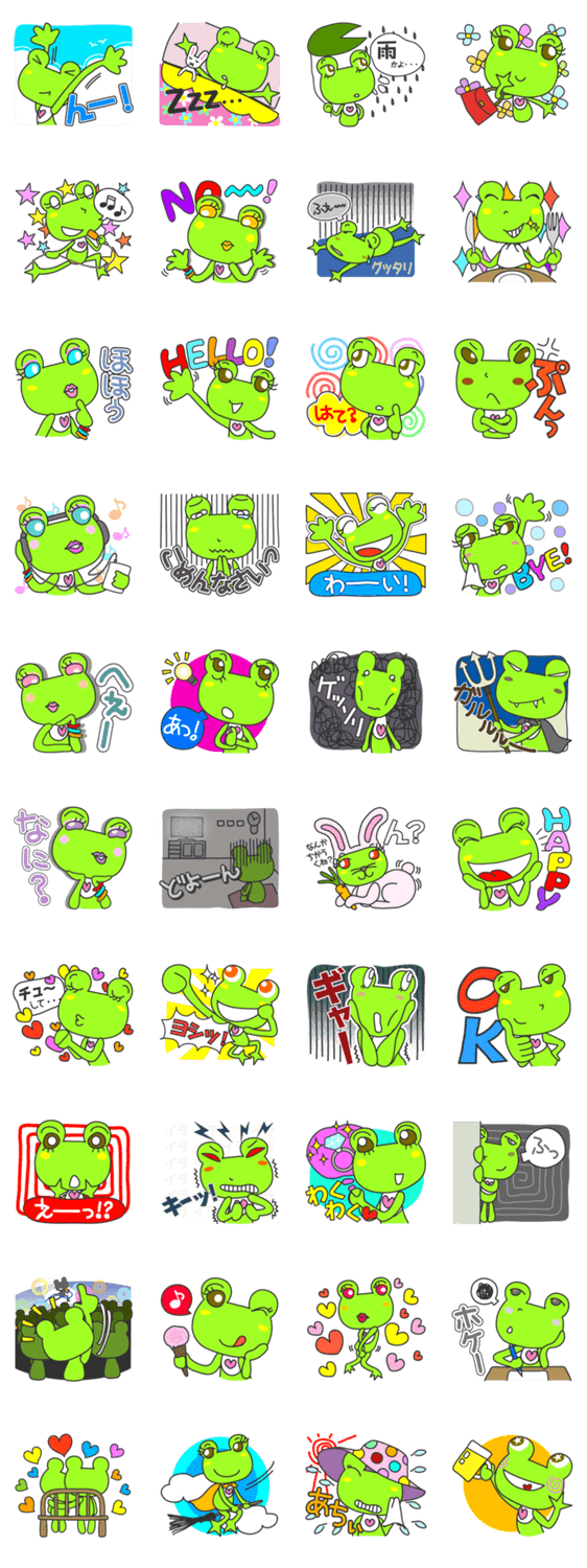 かえるんの日々 ころん コメントをどうぞ カエルの「かえるん」たちの日常です。クールな子、おちゃめな子、いろんな子がいますので、かわいがってあげてください。 このスタンプどう思う?!↓クリックで投票♪好き (0)かわいい (0)かっこいい (0)おもしろい (0)使いやすそう (0)欲しい (0)萌え (0)ほっこりする (0)おしゃれ (0)ゆるい (0)こわい (0)ウザい (0)キモい (0)ムカつく (0)持ってる (0)癒される (0)セクシー (0)個性的 (0)私は買わない (0)誰かプレゼントして! (0) 購入・プレゼントする Facebookでシェア Twitterでシェア