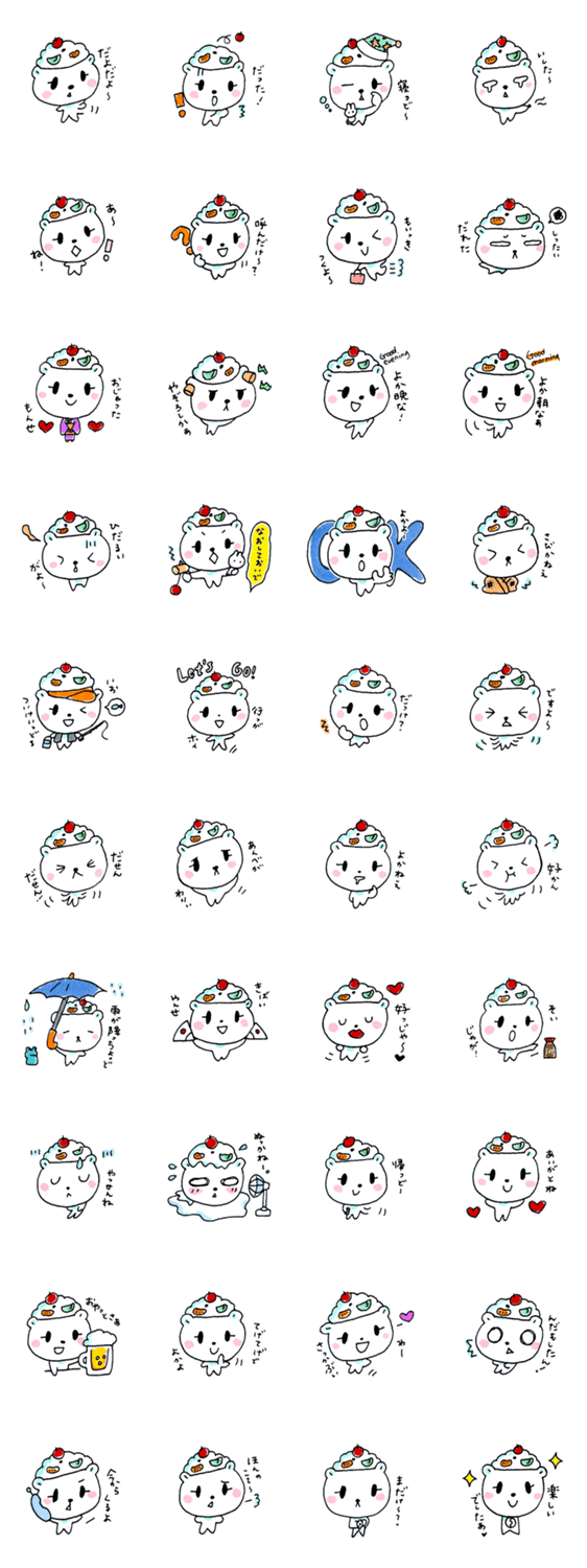 かごんま しろくまどん 2 Aya Edamoto コメントをどうぞ 南国鹿児島しろくまアイスが頭に乗ったしろくまどんの鹿児島弁スタンプ2です!よろしくね このスタンプどう思う?!↓クリックで投票♪好き (0)かわいい (0)かっこいい (0)おもしろい (0)使いやすそう (0)欲しい (0)萌え (0)ほっこりする (0)おしゃれ (0)ゆるい (0)こわい (0)ウザい (0)キモい (0)ムカつく (0)持ってる (0)癒される (0)セクシー (0)個性的 (0)私は買わない (0)誰かプレゼントして! (0) 購入・プレゼントする Facebookでシェア Twitterでシェア