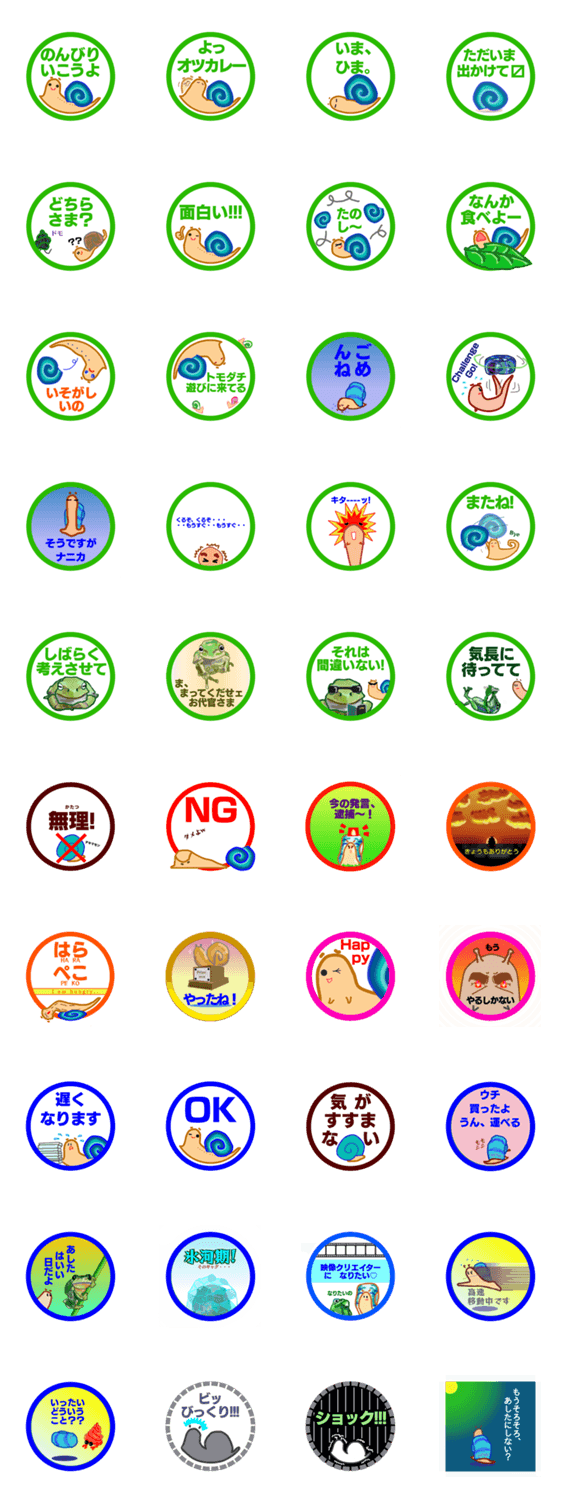かたつむり ツム太のいいたいこと smile_mint コメントをどうぞ うずまきの殻を背中に乗せたカタツムリは自由です。自分の家を運びながら、行った先が我が家になるのだからいいですね。いろいろなものを見物しながら生きていきたいな。 このスタンプどう思う?!↓クリックで投票♪好き (0)かわいい (0)かっこいい (0)おもしろい (0)使いやすそう (0)欲しい (0)萌え (0)ほっこりする (0)おしゃれ (0)ゆるい (0)こわい (0)ウザい (0)キモい (0)ムカつく (0)持ってる (0)癒される (0)セクシー (0)個性的 (0)私は買わない (0)誰かプレゼントして! (0) 購入・プレゼントする Facebookでシェア Twitterでシェア