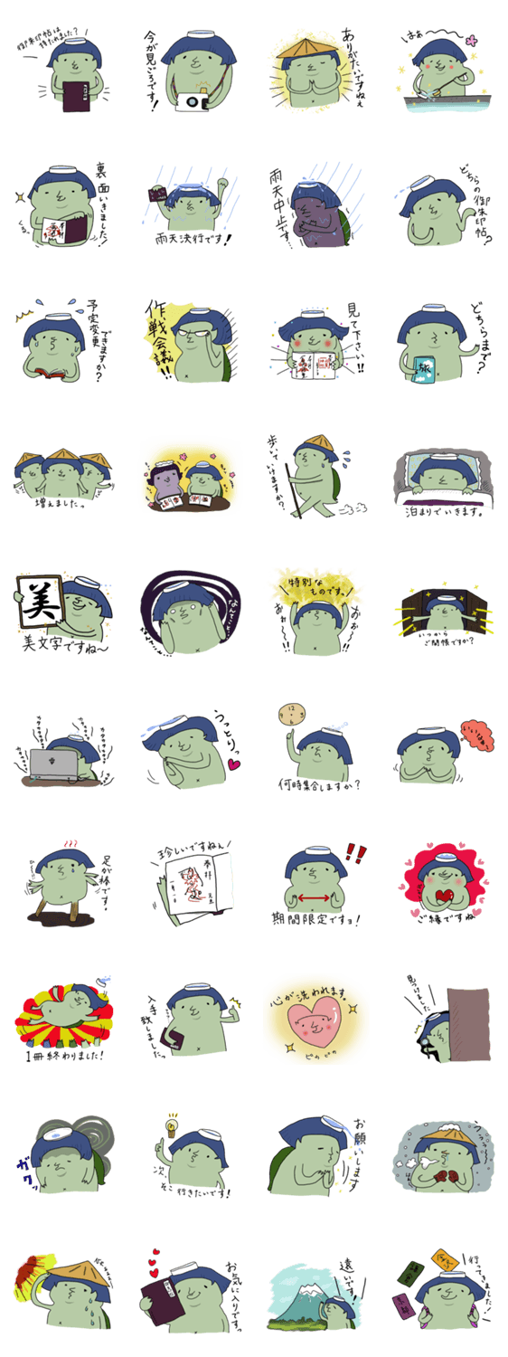 かっぱのかわ子さん(御朱印巡り編) renmaru コメントをどうぞ かわ子さん第二弾は、彼女の趣味、御朱印巡りスタンプ。御朱印帖を眺めたり、旅先を考えたり、御朱印集めが趣味な人やそうでもない人にも使えるスタンプです! このスタンプどう思う?!↓クリックで投票♪好き (0)かわいい (0)かっこいい (0)おもしろい (0)使いやすそう (0)欲しい (0)萌え (0)ほっこりする (0)おしゃれ (0)ゆるい (0)こわい (0)ウザい (0)キモい (0)ムカつく (0)持ってる (0)癒される (0)セクシー (0)個性的 (0)私は買わない (0)誰かプレゼントして! (0) 購入・プレゼントする Facebookでシェア Twitterでシェア