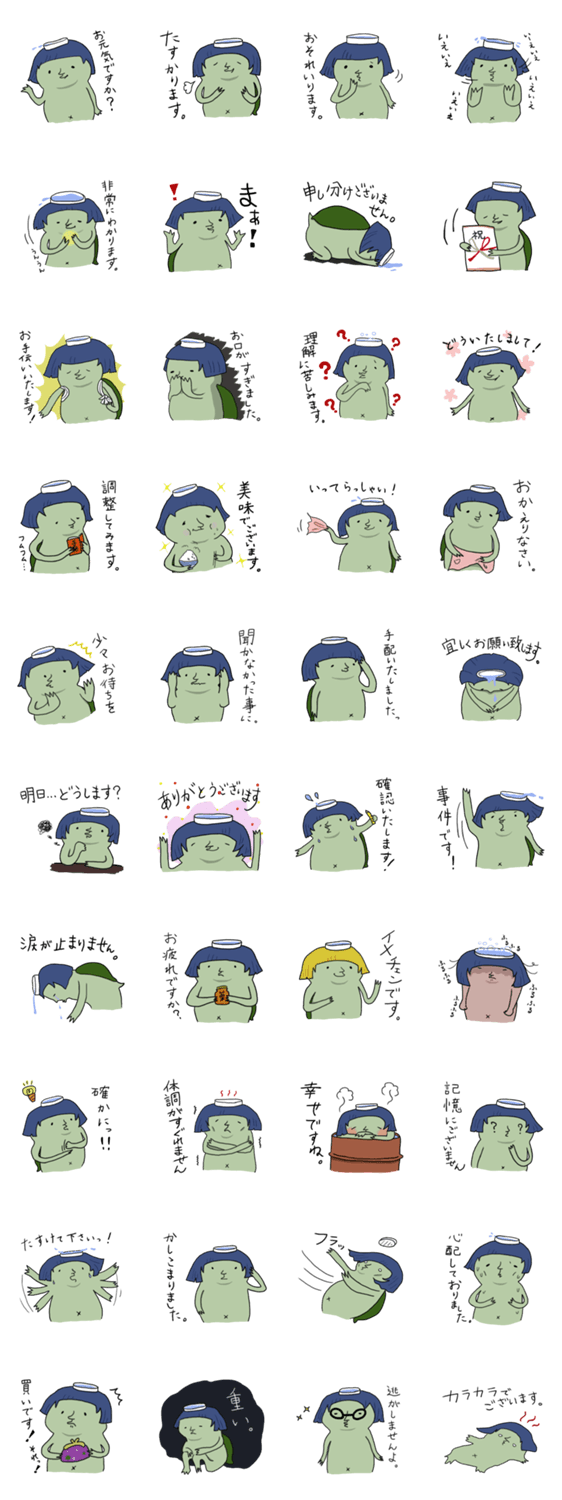 かっぱのかわ子さん renmaru コメントをどうぞ かっぱのかわ子さんは、とても上品な女性。会社の上司や先輩とのLINEに、かわ子さんの一歩引いた立ち居振る舞いのスタンプはピッタリ!是非とも活用したくなる一品です。 このスタンプどう思う?!↓クリックで投票♪好き (0)かわいい (0)かっこいい (0)おもしろい (0)使いやすそう (0)欲しい (0)萌え (0)ほっこりする (0)おしゃれ (0)ゆるい (0)こわい (0)ウザい (0)キモい (0)ムカつく (0)持ってる (0)癒される (0)セクシー (0)個性的 (0)私は買わない (0)誰かプレゼントして! (0) 購入・プレゼントする Facebookでシェア Twitterでシェア