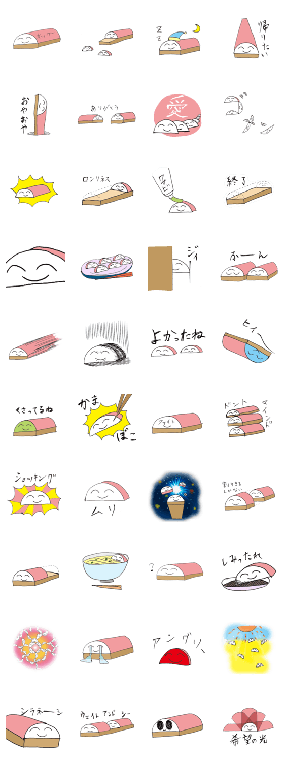 かまぼこズ DLE コメントをどうぞ いつも笑顔の「かまぼこズ」が、スタンプになって登場です。表情の豊かさをおたのしみください。 このスタンプどう思う?!↓クリックで投票♪好き (0)かわいい (0)かっこいい (0)おもしろい (0)使いやすそう (0)欲しい (0)萌え (0)ほっこりする (0)おしゃれ (0)ゆるい (0)こわい (0)ウザい (0)キモい (0)ムカつく (0)持ってる (0)癒される (0)セクシー (0)個性的 (0)私は買わない (0)誰かプレゼントして! (0) 購入・プレゼントする Facebookでシェア Twitterでシェア