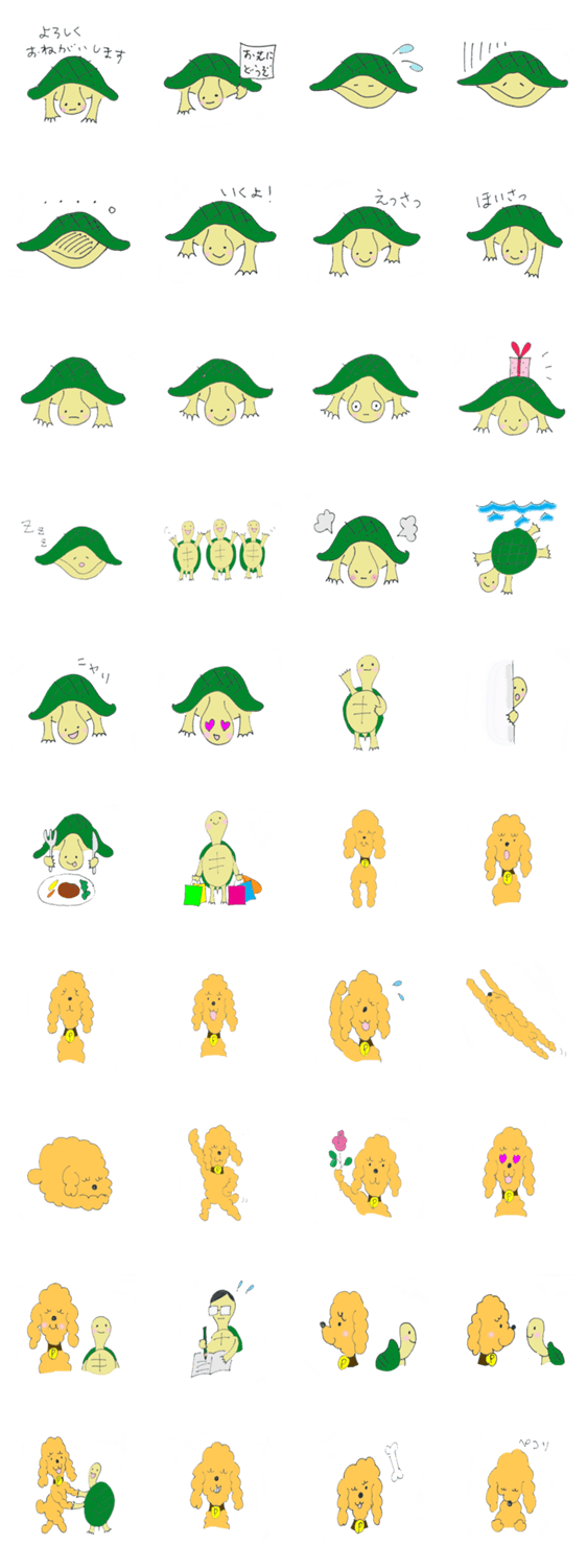 かめさんとプードルさん tomorufu コメントをどうぞ のんびり似た者同士の「かめさん」と「プードルさん」の日々をイメージしたスタンプです このスタンプどう思う?!↓クリックで投票♪好き (0)かわいい (0)かっこいい (0)おもしろい (0)使いやすそう (0)欲しい (0)萌え (0)ほっこりする (0)おしゃれ (0)ゆるい (0)こわい (0)ウザい (0)キモい (0)ムカつく (0)持ってる (0)癒される (0)セクシー (0)個性的 (0)私は買わない (0)誰かプレゼントして! (0) 購入・プレゼントする Facebookでシェア Twitterでシェア