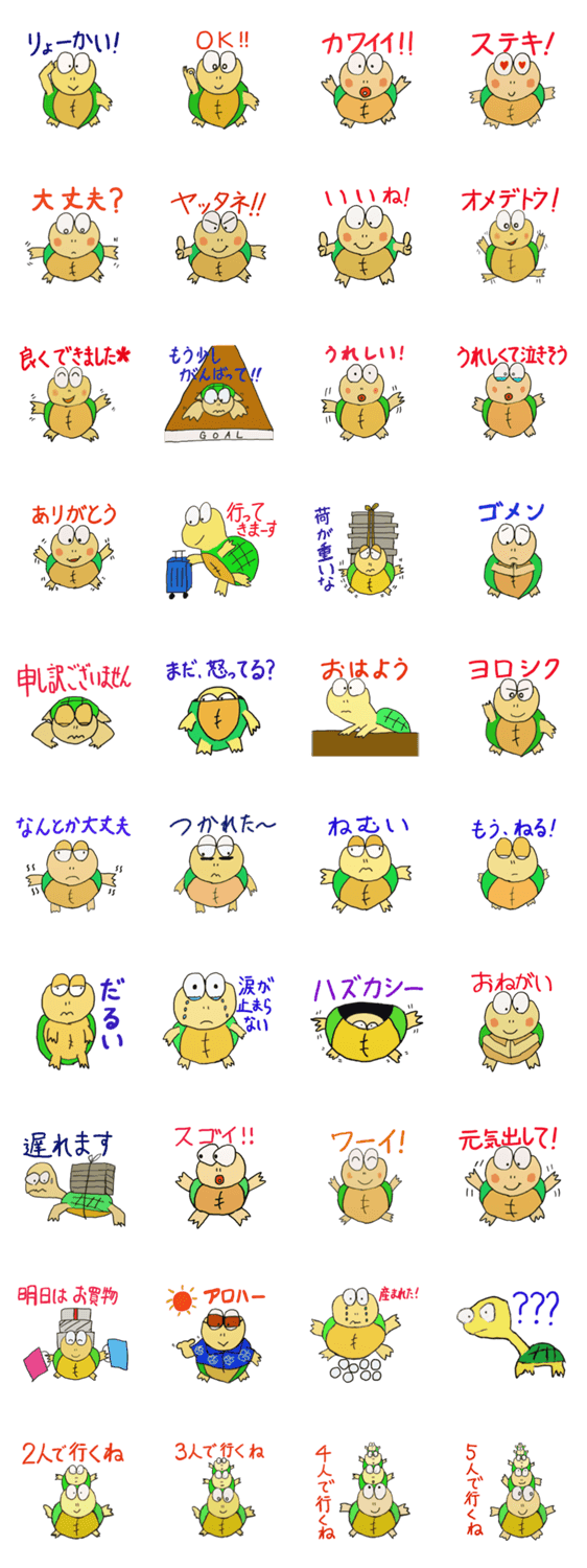 かめ次郎1 miya-tama コメントをどうぞ かめ次郎の第1弾です。ご家族やお友達との楽しい会話に使用していただければ、とてもうれしいです。 このスタンプどう思う?!↓クリックで投票♪好き (0)かわいい (0)かっこいい (0)おもしろい (0)使いやすそう (0)欲しい (0)萌え (0)ほっこりする (0)おしゃれ (0)ゆるい (0)こわい (0)ウザい (0)キモい (0)ムカつく (0)持ってる (0)癒される (0)セクシー (0)個性的 (0)私は買わない (0)誰かプレゼントして! (0) 購入・プレゼントする Facebookでシェア Twitterでシェア
