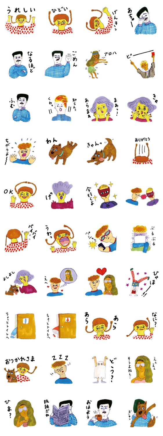 かやこのスタンプ 家族編 かみやかやこ コメントをどうぞ イラストレーター かみやかやこスタンプ 家族編。パパ ママ 娘 息子 わんちゃん 息子の彼女などなど。カラフルでゆるっとした登場人物が、あなたの会話を盛り上げます。 このスタンプどう思う?!↓クリックで投票♪好き (0)かわいい (0)かっこいい (0)おもしろい (0)使いやすそう (0)欲しい (0)萌え (0)ほっこりする (0)おしゃれ (0)ゆるい (0)こわい (0)ウザい (0)キモい (0)ムカつく (0)持ってる (0)癒される (0)セクシー (0)個性的 (0)私は買わない (0)誰かプレゼントして! (0) 購入・プレゼントする Facebookでシェア Twitterでシェア