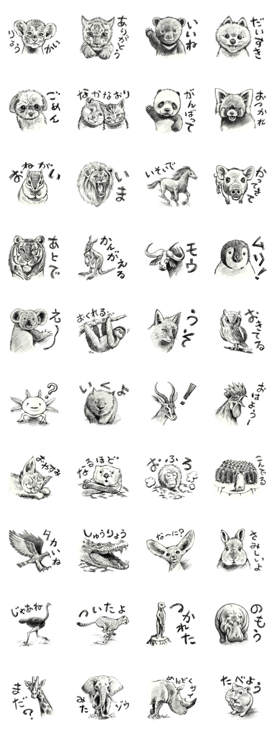 かわいく野性的な動物★鉛筆デッサン minorin コメントをどうぞ かわいく野性的な動物を鉛筆でデッサンした、大人っぽくて格好いい魅力的なスタンプです。 このスタンプどう思う?!↓クリックで投票♪好き (0)かわいい (0)かっこいい (0)おもしろい (0)使いやすそう (0)欲しい (0)萌え (0)ほっこりする (0)おしゃれ (0)ゆるい (0)こわい (0)ウザい (0)キモい (0)ムカつく (0)持ってる (0)癒される (0)セクシー (0)個性的 (0)私は買わない (0)誰かプレゼントして! (0) 購入・プレゼントする Facebookでシェア Twitterでシェア