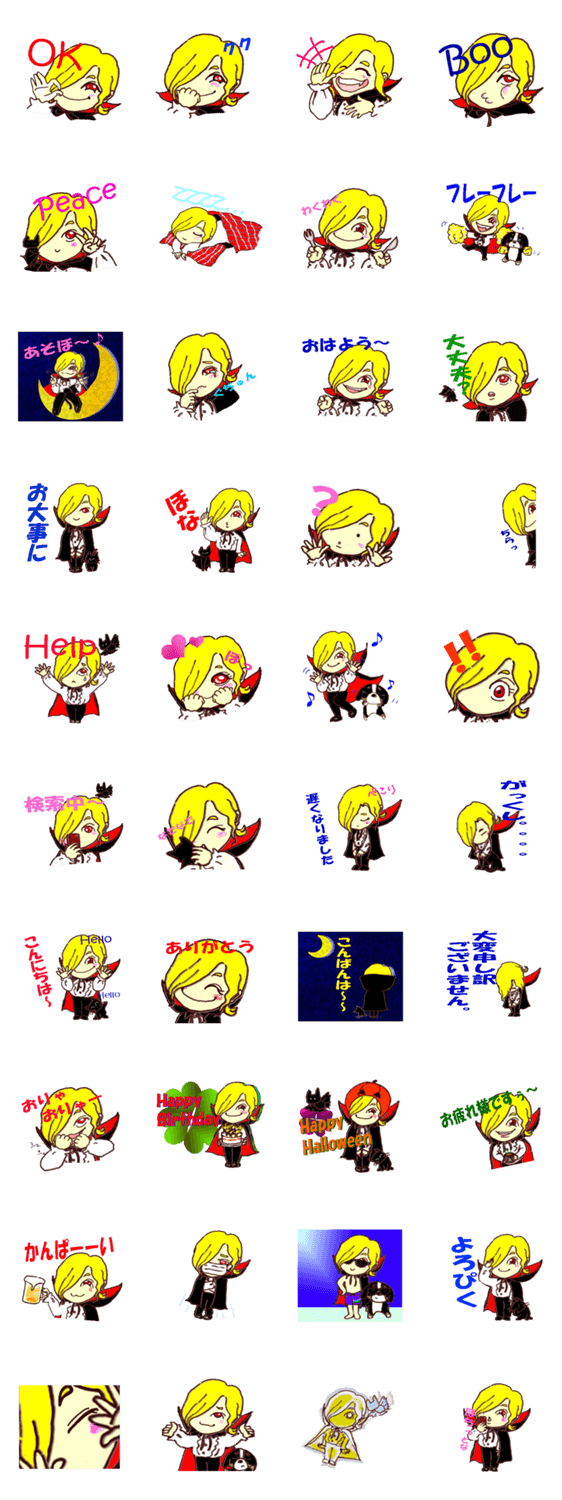 かわいなヴァンパイヤくん kabosuke コメントをどうぞ ヴァンパイヤくんの日常会話。彼はほとんど牙のないほんわか吸血鬼?!お友達はくろねこちゃん・バーニーズ犬のわんちゃん・こうもりくんです。 このスタンプどう思う?!↓クリックで投票♪好き (0)かわいい (0)かっこいい (0)おもしろい (0)使いやすそう (0)欲しい (0)萌え (0)ほっこりする (0)おしゃれ (0)ゆるい (0)こわい (0)ウザい (0)キモい (0)ムカつく (0)持ってる (0)癒される (0)セクシー (0)個性的 (0)私は買わない (0)誰かプレゼントして! (0) 購入・プレゼントする Facebookでシェア Twitterでシェア