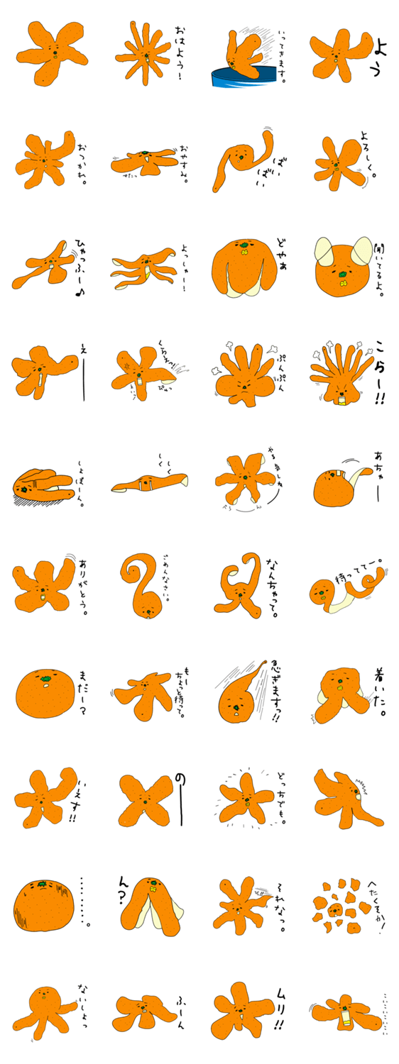 かわみかん Hiyoshi コメントをどうぞ かわみかんはみかんのかわ。むき方一つで表情いろいろ。ゆるく、うざく、時に悲しく。使ってるうちに可愛く見えてきたり、こなかったり。 このスタンプどう思う?!↓クリックで投票♪好き (0)かわいい (0)かっこいい (0)おもしろい (0)使いやすそう (0)欲しい (0)萌え (0)ほっこりする (0)おしゃれ (0)ゆるい (0)こわい (0)ウザい (0)キモい (0)ムカつく (0)持ってる (0)癒される (0)セクシー (0)個性的 (0)私は買わない (0)誰かプレゼントして! (0) 購入・プレゼントする Facebookでシェア Twitterでシェア