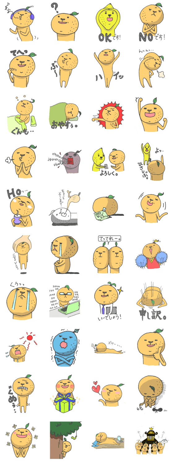 かんきちゅ morisu コメントをどうぞ ミカンみたいなものが色々やっています。レモンはたまにしか出てきません。様々なシチュエーションでの感情表現にぜひミカンを使ってみてください。 このスタンプどう思う?!↓クリックで投票♪好き (0)かわいい (0)かっこいい (0)おもしろい (0)使いやすそう (0)欲しい (0)萌え (0)ほっこりする (0)おしゃれ (0)ゆるい (0)こわい (0)ウザい (0)キモい (0)ムカつく (0)持ってる (0)癒される (0)セクシー (0)個性的 (0)私は買わない (0)誰かプレゼントして! (0) 購入・プレゼントする Facebookでシェア Twitterでシェア