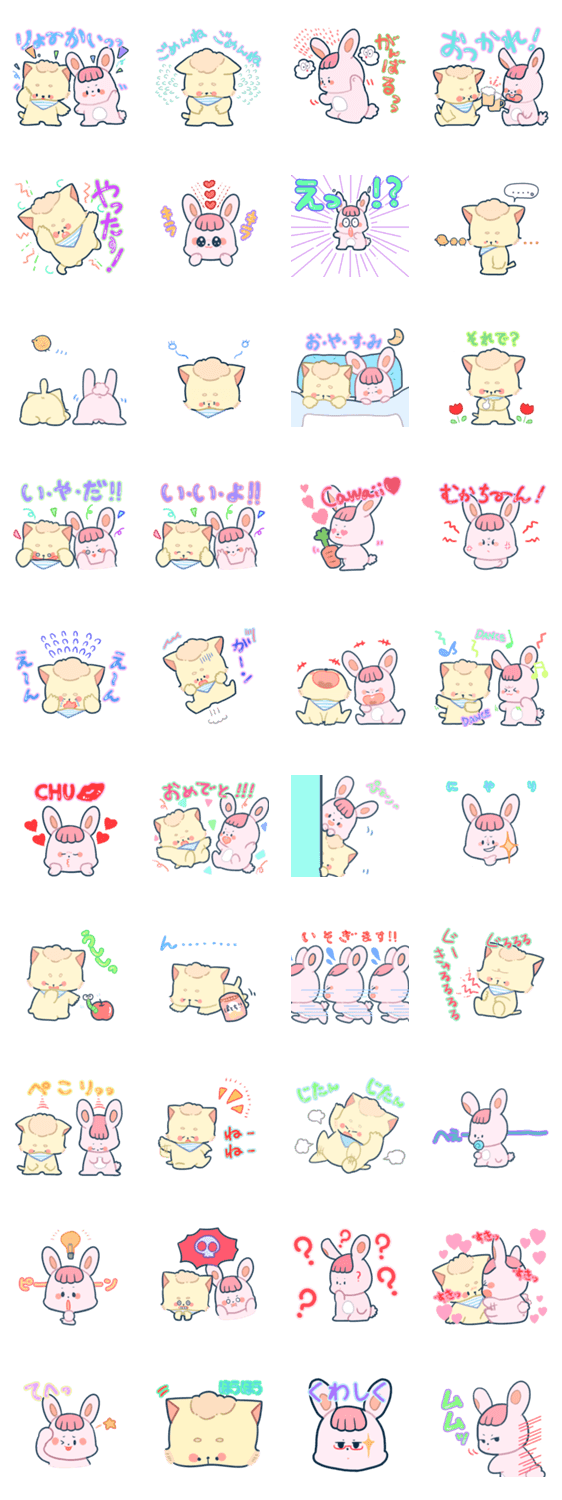 きいろ猫とももいろウサギ しろみ コメントをどうぞ 黄色い猫とももいろウサギのコミカルで可愛いスタンプです。沢山の用途に使ってください。 このスタンプどう思う?!↓クリックで投票♪好き (0)かわいい (0)かっこいい (0)おもしろい (0)使いやすそう (0)欲しい (0)萌え (0)ほっこりする (0)おしゃれ (0)ゆるい (0)こわい (0)ウザい (0)キモい (0)ムカつく (0)持ってる (0)癒される (0)セクシー (0)個性的 (0)私は買わない (0)誰かプレゼントして! (0) 購入・プレゼントする Facebookでシェア Twitterでシェア