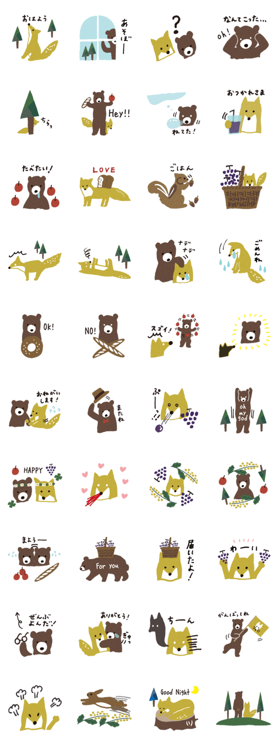 きつねとくま 3bikinokoguma コメントをどうぞ お調子者のきつねと優しいくまのスタンプです。いつも仲良く森に住んでいます。きつねはぶどうが、くまはりんごが大好きです。 このスタンプどう思う?!↓クリックで投票♪好き (0)かわいい (0)かっこいい (0)おもしろい (0)使いやすそう (0)欲しい (0)萌え (0)ほっこりする (0)おしゃれ (0)ゆるい (0)こわい (0)ウザい (0)キモい (0)ムカつく (0)持ってる (0)癒される (0)セクシー (0)個性的 (0)私は買わない (0)誰かプレゼントして! (0) 購入・プレゼントする Facebookでシェア Twitterでシェア