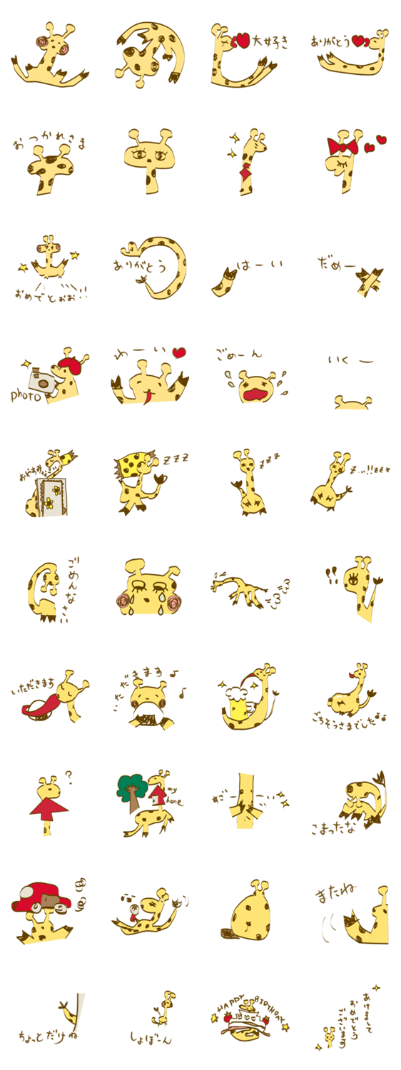 きりんさん @ina コメントをどうぞ たぶん、こんなキリンいない。でも、僕はココにいます。今日も一日元気です♪♪ このスタンプどう思う?!↓クリックで投票♪好き (0)かわいい (0)かっこいい (0)おもしろい (0)使いやすそう (0)欲しい (0)萌え (0)ほっこりする (0)おしゃれ (0)ゆるい (0)こわい (0)ウザい (0)キモい (0)ムカつく (0)持ってる (0)癒される (0)セクシー (0)個性的 (0)私は買わない (0)誰かプレゼントして! (0) 購入・プレゼントする Facebookでシェア Twitterでシェア