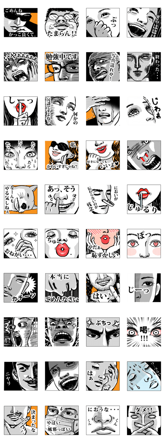 くどい位の顔アップ Mari Yamamoto コメントをどうぞ これでもかというほど、ギリギリまで顔をアップにしました。これを使えばくどい位気持ちが伝わるかも!?いつもの会話に迫力が出ます。 このスタンプどう思う?!↓クリックで投票♪好き (0)かわいい (0)かっこいい (0)おもしろい (0)使いやすそう (0)欲しい (0)萌え (0)ほっこりする (0)おしゃれ (0)ゆるい (0)こわい (0)ウザい (0)キモい (0)ムカつく (0)持ってる (0)癒される (0)セクシー (0)個性的 (0)私は買わない (0)誰かプレゼントして! (0) 購入・プレゼントする Facebookでシェア Twitterでシェア