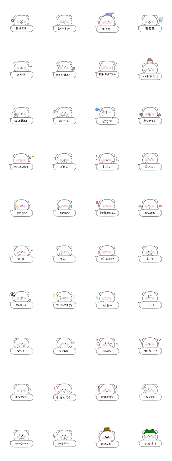 くまたん(ふきだし) taso コメントをどうぞ くまのスタンプくまたんの第二弾!ふきだしに言葉があり使いやすいです! このスタンプどう思う?!↓クリックで投票♪好き (0)かわいい (0)かっこいい (0)おもしろい (0)使いやすそう (0)欲しい (0)萌え (0)ほっこりする (0)おしゃれ (0)ゆるい (0)こわい (0)ウザい (0)キモい (0)ムカつく (0)持ってる (0)癒される (0)セクシー (0)個性的 (0)私は買わない (0)誰かプレゼントして! (0) 購入・プレゼントする Facebookでシェア Twitterでシェア