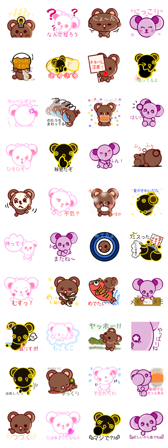 くまちょこれいと.2 Seira コメントをどうぞ チョコレートのくま『くまちょ』と仲間たちのスタンプ。個性的な4匹のくまがスタンプを可愛く?!しちゃいます。今回は『な』〜『や』行までのスタンプです。 このスタンプどう思う?!↓クリックで投票♪好き (0)かわいい (0)かっこいい (0)おもしろい (0)使いやすそう (0)欲しい (0)萌え (0)ほっこりする (0)おしゃれ (0)ゆるい (0)こわい (0)ウザい (0)キモい (0)ムカつく (0)持ってる (0)癒される (0)セクシー (0)個性的 (0)私は買わない (0)誰かプレゼントして! (0) 購入・プレゼントする Facebookでシェア Twitterでシェア