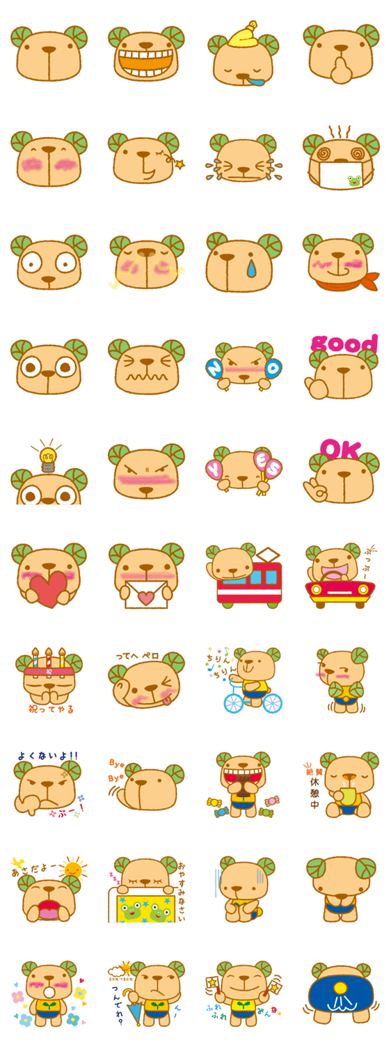 くまっ葉 fluffy コメントをどうぞ ボクはくまっ葉。耳が葉っぱになってるの。おとこのこだから青いパンツなんだ。なんで耳が葉っぱなのかはナゾ。きっと、森がだいすきだからだ。・・・と思う このスタンプどう思う?!↓クリックで投票♪好き (0)かわいい (0)かっこいい (0)おもしろい (0)使いやすそう (0)欲しい (0)萌え (0)ほっこりする (0)おしゃれ (0)ゆるい (0)こわい (0)ウザい (0)キモい (0)ムカつく (0)持ってる (0)癒される (0)セクシー (0)個性的 (0)私は買わない (0)誰かプレゼントして! (0) 購入・プレゼントする Facebookでシェア Twitterでシェア