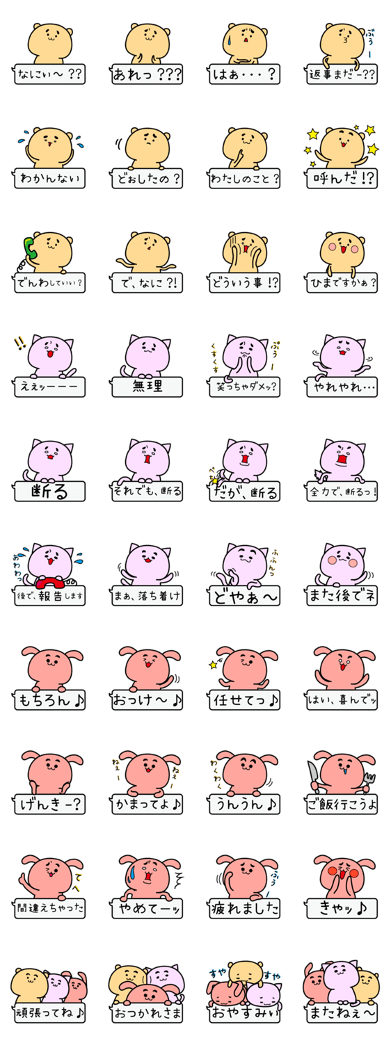 くまとうさぎと、時々ねこ さやん コメントをどうぞ 可愛いくま&うさぎ&ねこスタンプです。日常会話の合間や、お誘い、ねぎらい、お断りなど、幅広く使って頂けます。 このスタンプどう思う?!↓クリックで投票♪好き (0)かわいい (0)かっこいい (0)おもしろい (0)使いやすそう (0)欲しい (0)萌え (0)ほっこりする (0)おしゃれ (0)ゆるい (0)こわい (0)ウザい (0)キモい (0)ムカつく (0)持ってる (0)癒される (0)セクシー (0)個性的 (0)私は買わない (0)誰かプレゼントして! (0) 購入・プレゼントする Facebookでシェア Twitterでシェア