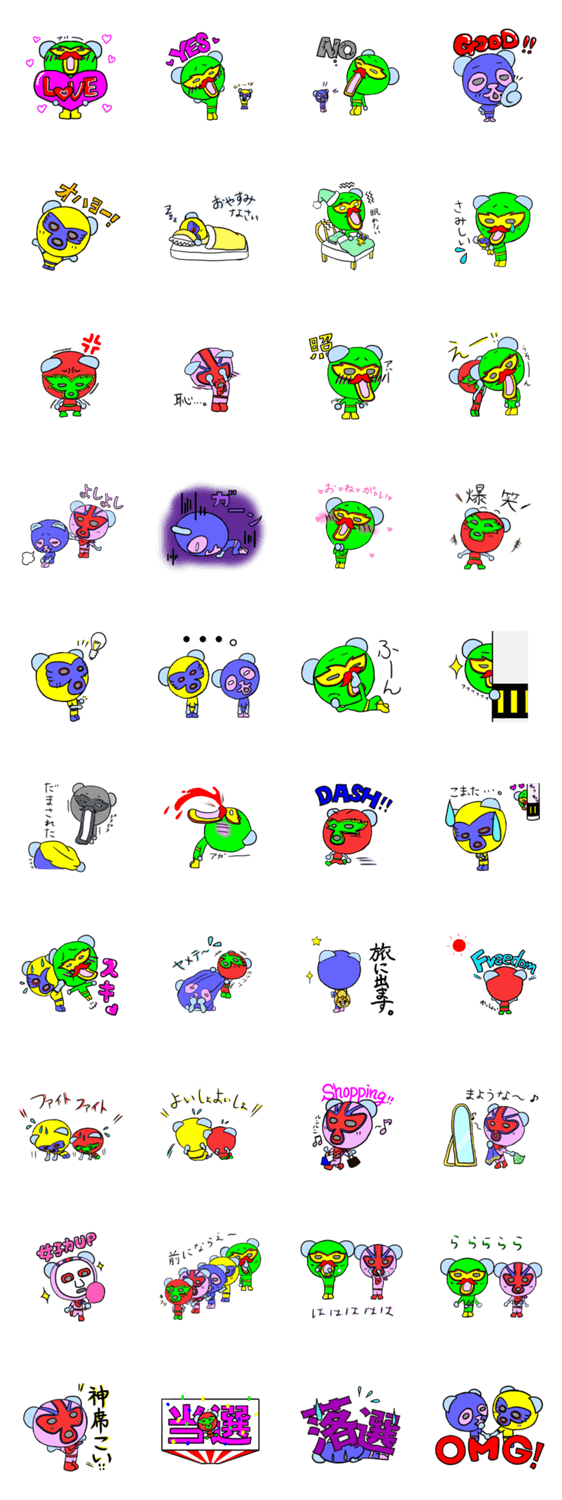 くまのマスクマン よんぎ コメントをどうぞ 色んな色のマスクマンたちをお楽しみください。ちなみに全部オスです。 このスタンプどう思う?!↓クリックで投票♪好き (0)かわいい (0)かっこいい (0)おもしろい (0)使いやすそう (0)欲しい (0)萌え (0)ほっこりする (0)おしゃれ (0)ゆるい (0)こわい (0)ウザい (0)キモい (0)ムカつく (0)持ってる (0)癒される (0)セクシー (0)個性的 (0)私は買わない (0)誰かプレゼントして! (0) 購入・プレゼントする Facebookでシェア Twitterでシェア