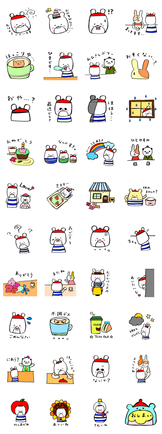 くまカフェ さや コメントをどうぞ "森のくまカフェ"のマスターは初老の熊です。お客さんとの他愛ないやりとりがマスターの楽しみ。そんな日常をスタンプにしてみました。 このスタンプどう思う?!↓クリックで投票♪好き (0)かわいい (0)かっこいい (0)おもしろい (0)使いやすそう (0)欲しい (0)萌え (0)ほっこりする (0)おしゃれ (0)ゆるい (0)こわい (0)ウザい (0)キモい (0)ムカつく (0)持ってる (0)癒される (0)セクシー (0)個性的 (0)私は買わない (0)誰かプレゼントして! (0) 購入・プレゼントする Facebookでシェア Twitterでシェア