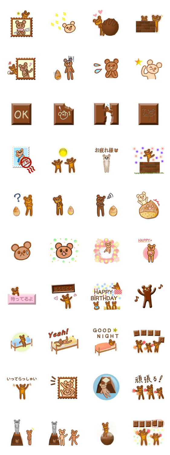 くまショコラ 吉藤ナツ コメントをどうぞ チョコレートを使った可愛いスタンプです。くま好き、チョコ好きな方にもおススメで、感情表現もけっこうあります。日常のちょっとしたやりとりに役立てると嬉しいです。 このスタンプどう思う?!↓クリックで投票♪好き (0)かわいい (0)かっこいい (0)おもしろい (0)使いやすそう (0)欲しい (0)萌え (0)ほっこりする (0)おしゃれ (0)ゆるい (0)こわい (0)ウザい (0)キモい (0)ムカつく (0)持ってる (0)癒される (0)セクシー (0)個性的 (0)私は買わない (0)誰かプレゼントして! (0) 購入・プレゼントする Facebookでシェア Twitterでシェア