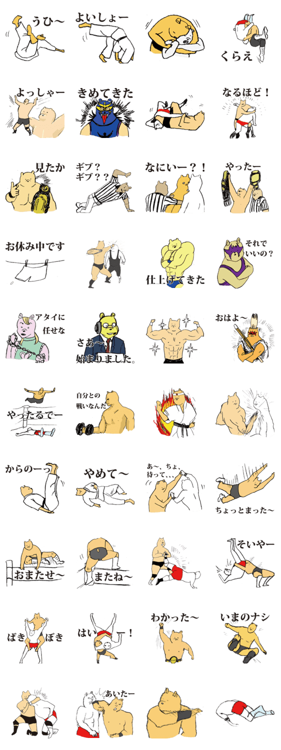 くまプロレス みき みやもと コメントをどうぞ いよいよ開催!M[みんな]D[大好き]K[クマ]P[プロレス]!!プロレス好き、クマ好き、そうでないあなたにも愛される、そんなスタンプになりたい。 このスタンプどう思う?!↓クリックで投票♪好き (0)かわいい (0)かっこいい (0)おもしろい (0)使いやすそう (0)欲しい (0)萌え (0)ほっこりする (0)おしゃれ (0)ゆるい (0)こわい (0)ウザい (0)キモい (0)ムカつく (0)持ってる (0)癒される (0)セクシー (0)個性的 (0)私は買わない (0)誰かプレゼントして! (0) 購入・プレゼントする Facebookでシェア Twitterでシェア