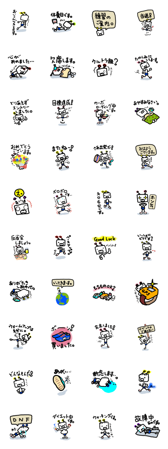 くまロボ ジョガー用 AnnePapana コメントをどうぞ くまロボもランにハマってます。レッツ!ラン&ジョグ!マラソン、ジョギング仲間とのコミュニケーション用にご利用ください。 このスタンプどう思う?!↓クリックで投票♪好き (0)かわいい (0)かっこいい (0)おもしろい (0)使いやすそう (0)欲しい (0)萌え (0)ほっこりする (0)おしゃれ (0)ゆるい (0)こわい (0)ウザい (0)キモい (0)ムカつく (0)持ってる (0)癒される (0)セクシー (0)個性的 (0)私は買わない (0)誰かプレゼントして! (0) 購入・プレゼントする Facebookでシェア Twitterでシェア