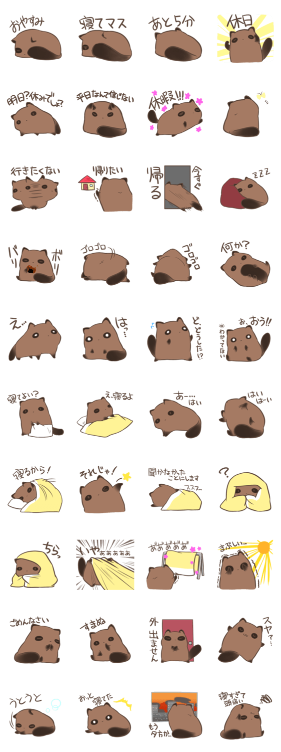 ぐうたらたぬき ももくらげ コメントをどうぞ 寝たくて休みたがりで引きこもりたがりなたぬきのスタンプです! このスタンプどう思う?!↓クリックで投票♪好き (0)かわいい (0)かっこいい (0)おもしろい (0)使いやすそう (0)欲しい (0)萌え (0)ほっこりする (0)おしゃれ (0)ゆるい (0)こわい (0)ウザい (0)キモい (0)ムカつく (0)持ってる (0)癒される (0)セクシー (0)個性的 (0)私は買わない (0)誰かプレゼントして! (0) 購入・プレゼントする Facebookでシェア Twitterでシェア
