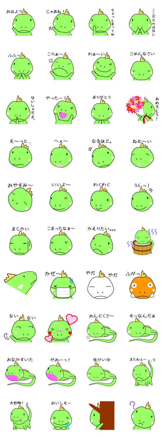 ぐりーんいぐあな Hide Bones コメントをどうぞ 無表情なイメージのイグアナ。結構表情豊かです!日常会話に使えるスタンプを揃えました! このスタンプどう思う?!↓クリックで投票♪好き (0)かわいい (0)かっこいい (0)おもしろい (0)使いやすそう (0)欲しい (0)萌え (0)ほっこりする (0)おしゃれ (0)ゆるい (0)こわい (0)ウザい (0)キモい (0)ムカつく (0)持ってる (0)癒される (0)セクシー (0)個性的 (0)私は買わない (0)誰かプレゼントして! (0) 購入・プレゼントする Facebookでシェア Twitterでシェア