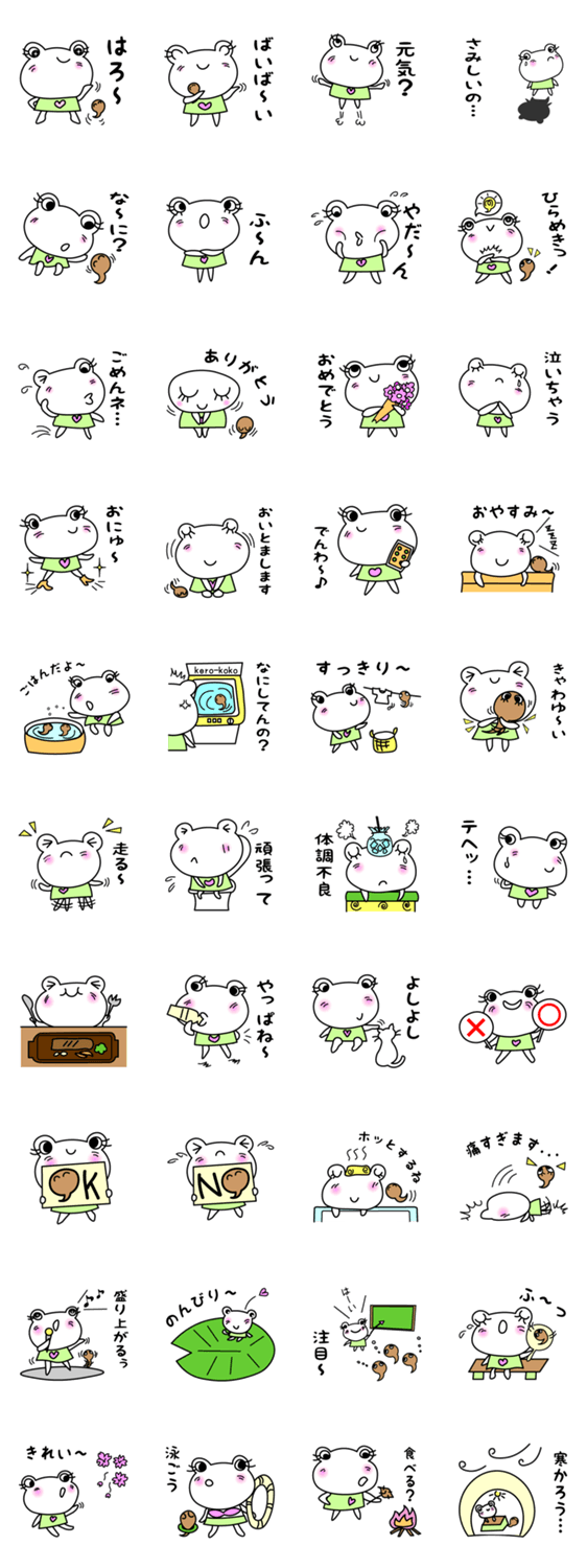けろたまちゃん きらり コメントをどうぞ カエルのケロちゃんとおたまじゃくしのタマちゃんは、いつも仲良し。癒しワールドを皆様にお届けします! このスタンプどう思う?!↓クリックで投票♪好き (0)かわいい (0)かっこいい (0)おもしろい (0)使いやすそう (0)欲しい (0)萌え (0)ほっこりする (0)おしゃれ (0)ゆるい (0)こわい (0)ウザい (0)キモい (0)ムカつく (0)持ってる (0)癒される (0)セクシー (0)個性的 (0)私は買わない (0)誰かプレゼントして! (0) 購入・プレゼントする Facebookでシェア Twitterでシェア