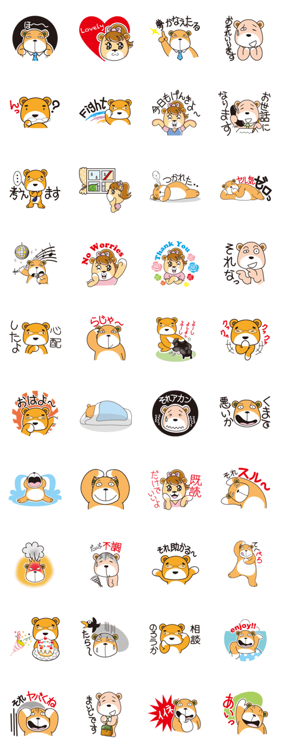 こぐまカンパニー boyoyama コメントをどうぞ こぐまカンパニーで働くゆる〜いくまさん達の日常のスタンプでございます。 このスタンプどう思う?!↓クリックで投票♪好き (0)かわいい (0)かっこいい (0)おもしろい (0)使いやすそう (0)欲しい (0)萌え (0)ほっこりする (0)おしゃれ (0)ゆるい (0)こわい (0)ウザい (0)キモい (0)ムカつく (0)持ってる (0)癒される (0)セクシー (0)個性的 (0)私は買わない (0)誰かプレゼントして! (0) 購入・プレゼントする Facebookでシェア Twitterでシェア