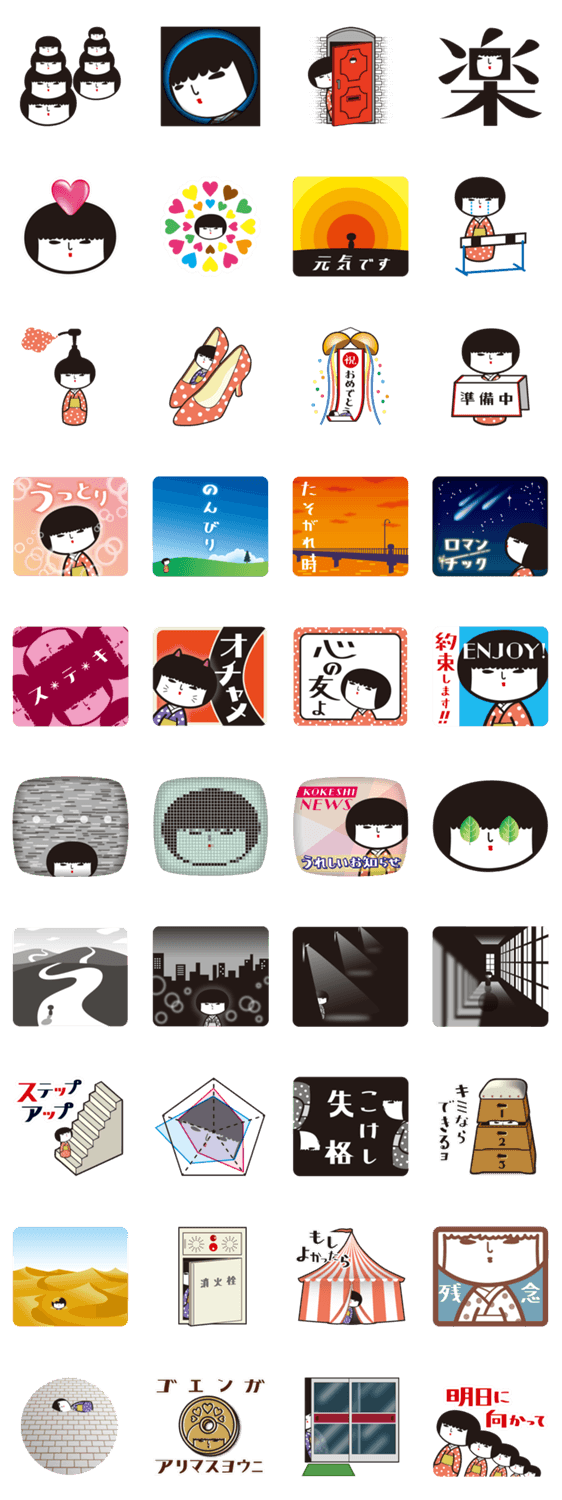 こけしあいこ シーズン8 小林晴樹 コメントをどうぞ こんにちは。みなさんお久しぶりです。こけしあいこのスタンプ、第8弾です。いつもあなたのすぐそばにいます。いつもあなたと一緒。今日も仲良くしてね。 このスタンプどう思う?!↓クリックで投票♪好き (0)かわいい (0)かっこいい (0)おもしろい (0)使いやすそう (0)欲しい (0)萌え (0)ほっこりする (0)おしゃれ (0)ゆるい (0)こわい (0)ウザい (0)キモい (0)ムカつく (0)持ってる (0)癒される (0)セクシー (0)個性的 (0)私は買わない (0)誰かプレゼントして! (0) 購入・プレゼントする Facebookでシェア Twitterでシェア