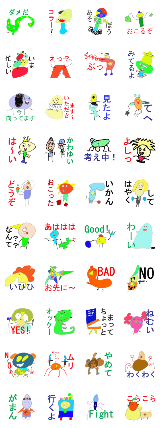 こたろうの世界 KOTARO コメントをどうぞ 7歳の感性が描いたゆるカワの世界。独自のセンスでほっこりさせます♪ このスタンプどう思う?!↓クリックで投票♪好き (0)かわいい (0)かっこいい (0)おもしろい (0)使いやすそう (0)欲しい (0)萌え (0)ほっこりする (0)おしゃれ (0)ゆるい (0)こわい (0)ウザい (0)キモい (0)ムカつく (0)持ってる (0)癒される (0)セクシー (0)個性的 (0)私は買わない (0)誰かプレゼントして! (0) 購入・プレゼントする Facebookでシェア Twitterでシェア