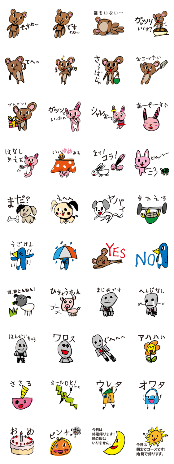 こどもアレンジャー カイテン コメントをどうぞ キツい言葉や重い言葉も純粋な子供の絵でかわいい世界に変身です。 このスタンプどう思う?!↓クリックで投票♪好き (0)かわいい (0)かっこいい (0)おもしろい (0)使いやすそう (0)欲しい (0)萌え (0)ほっこりする (0)おしゃれ (0)ゆるい (0)こわい (0)ウザい (0)キモい (0)ムカつく (0)持ってる (0)癒される (0)セクシー (0)個性的 (0)私は買わない (0)誰かプレゼントして! (0) 購入・プレゼントする Facebookでシェア Twitterでシェア