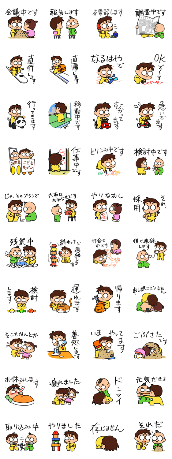 こどもカンパニー 1期目 ハカセ コメントをどうぞ こどもだけど、カンパニー。背伸びしつつもちょっと抜けてる、こどもたちの可愛い社会人生活をすこ~し覗き見。1期目! このスタンプどう思う?!↓クリックで投票♪好き (0)かわいい (0)かっこいい (0)おもしろい (0)使いやすそう (0)欲しい (0)萌え (0)ほっこりする (0)おしゃれ (0)ゆるい (0)こわい (0)ウザい (0)キモい (0)ムカつく (0)持ってる (0)癒される (0)セクシー (0)個性的 (0)私は買わない (0)誰かプレゼントして! (0) 購入・プレゼントする Facebookでシェア Twitterでシェア