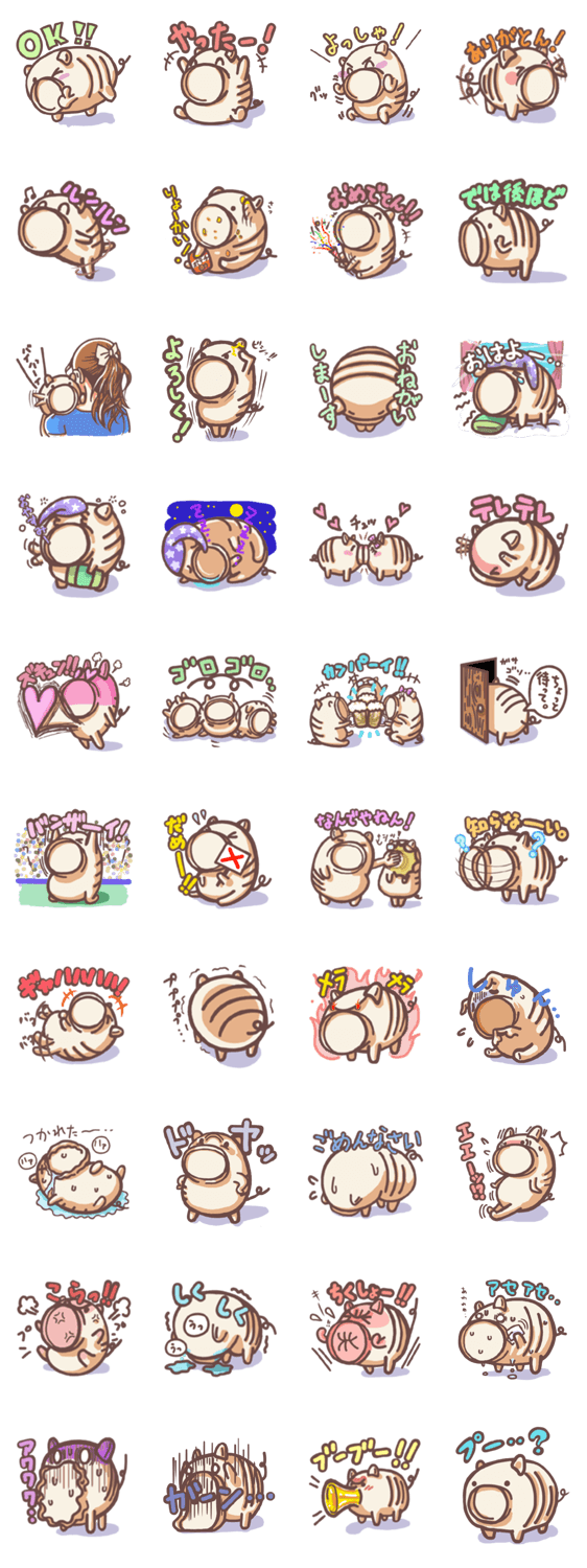 さかぶー Sakabou Inc. コメントをどうぞ さかぶーです。蚊取り線香の入ってるあいつ(蚊やりブタ)がモチーフです。「ありがとう」や「おはよう」など、かわいくて実用的なスタンプが入ってるのです! このスタンプどう思う?!↓クリックで投票♪好き (9)かわいい (12)かっこいい (18)おもしろい (24)使いやすそう (21)欲しい (8)萌え (7)ほっこりする (19)おしゃれ (7)ゆるい (7)こわい (5)ウザい (11)キモい (2)ムカつく (6)持ってる (7)癒される (2)セクシー (2)個性的 (0)私は買わない (2)誰かプレゼントして! (18) 購入・プレゼントする Facebookでシェア Twitterでシェア
