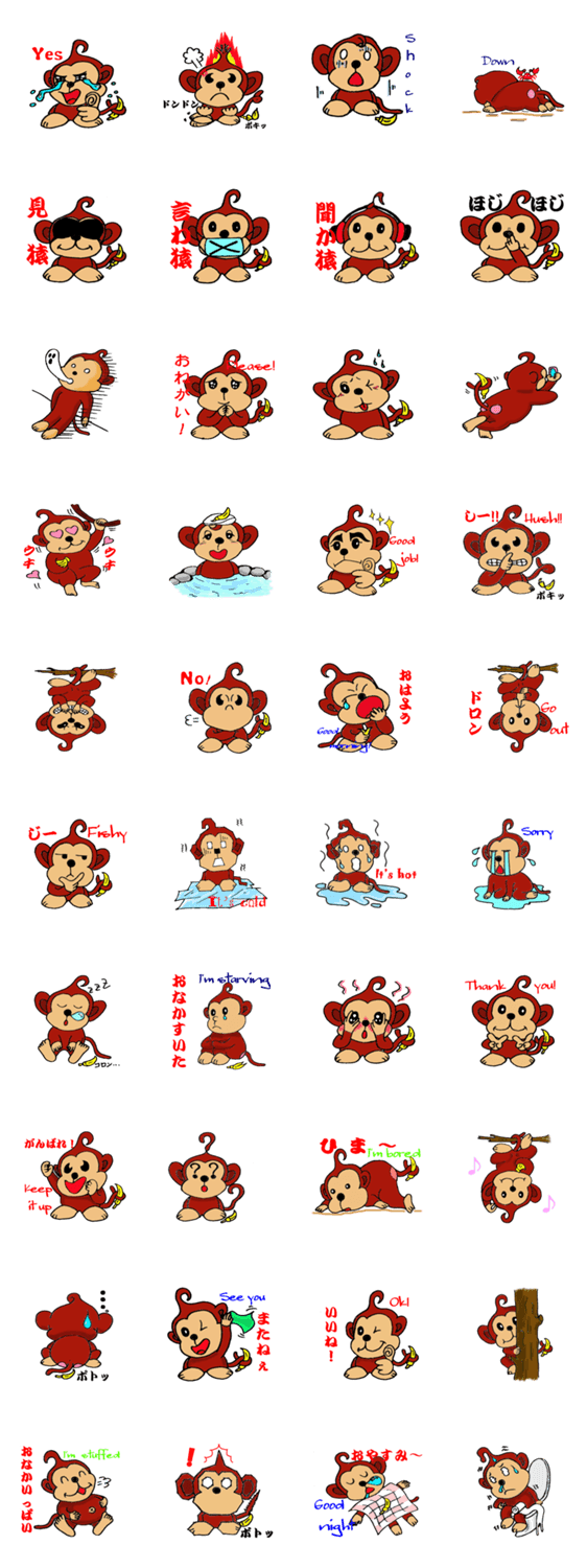 さるの”ラヴィー” hide コメントをどうぞ とあるお店のオリジナルキャラクターの”ラヴィー”! いたずら好きがたまにキズ。愛らしいラヴィーをよろしくねぇ! このスタンプどう思う?!↓クリックで投票♪好き (0)かわいい (0)かっこいい (0)おもしろい (0)使いやすそう (0)欲しい (0)萌え (0)ほっこりする (0)おしゃれ (0)ゆるい (0)こわい (0)ウザい (0)キモい (0)ムカつく (0)持ってる (0)癒される (0)セクシー (0)個性的 (0)私は買わない (0)誰かプレゼントして! (0) 購入・プレゼントする Facebookでシェア Twitterでシェア