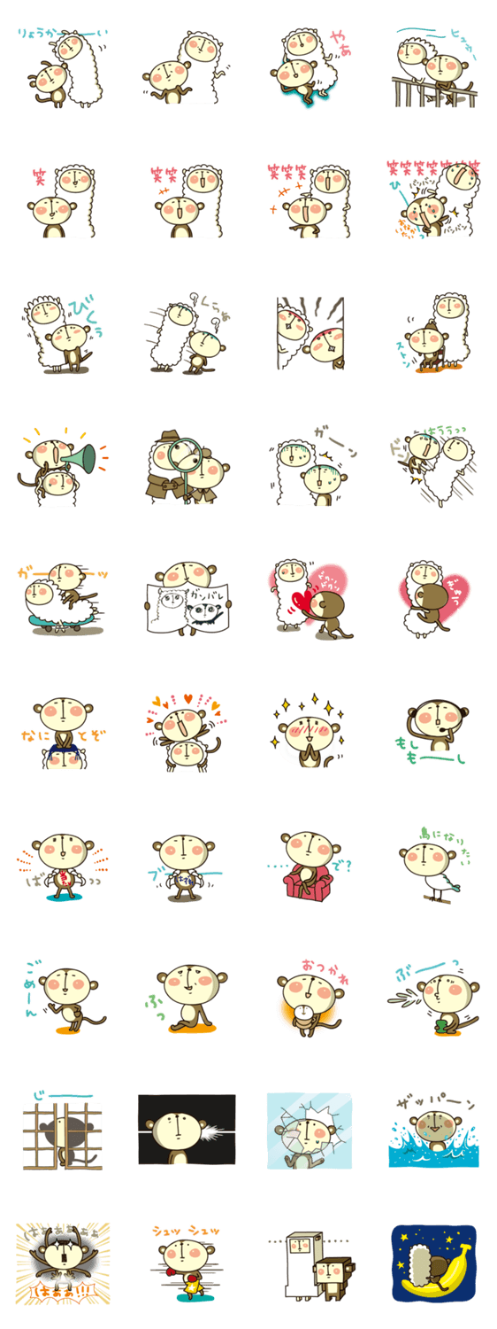 さるパカ Vol.3 YUUKI Co.,Ltd コメントをどうぞ 『さるパカ』スタンプ第3弾。ちょいウザな「さる」としっかり者の「アルパカ」の物語 このスタンプどう思う?!↓クリックで投票♪好き (0)かわいい (0)かっこいい (0)おもしろい (0)使いやすそう (0)欲しい (0)萌え (0)ほっこりする (0)おしゃれ (0)ゆるい (0)こわい (0)ウザい (0)キモい (0)ムカつく (0)持ってる (0)癒される (0)セクシー (0)個性的 (0)私は買わない (0)誰かプレゼントして! (0) 購入・プレゼントする Facebookでシェア Twitterでシェア