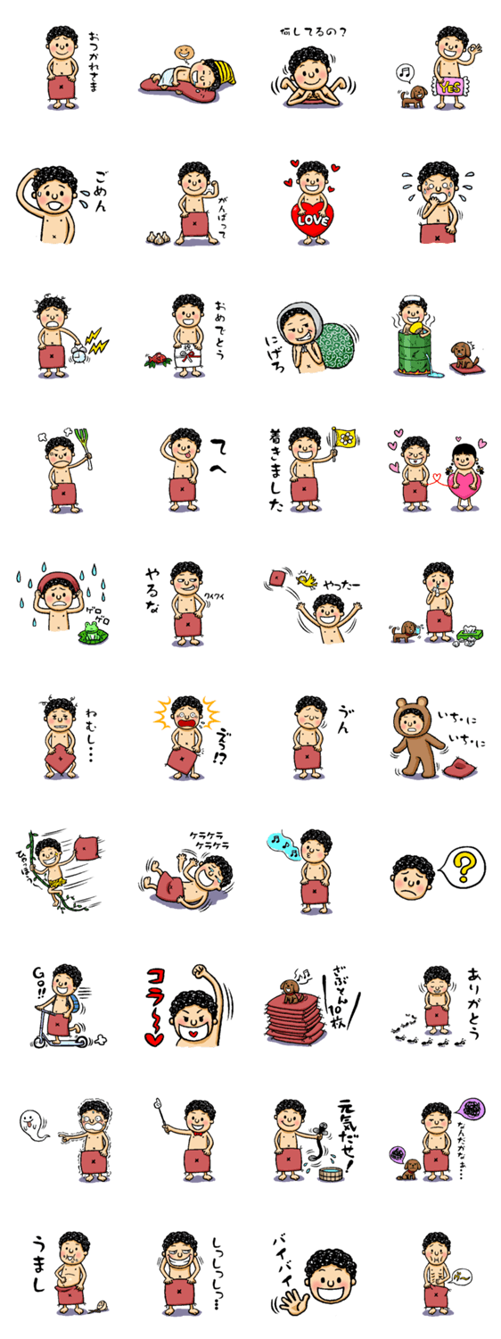 ざぶ坊 kokoroom コメントをどうぞ いつも裸で座布団を持ち歩く、元気でかわいい子供の男の子人気者「ざぶ坊」。日常生活を表現した使いやすい便利な、ゆるいくすぐり系スタンプ。可愛い犬もでてくるよ。 このスタンプどう思う?!↓クリックで投票♪好き (0)かわいい (0)かっこいい (0)おもしろい (0)使いやすそう (0)欲しい (0)萌え (0)ほっこりする (0)おしゃれ (0)ゆるい (0)こわい (0)ウザい (0)キモい (0)ムカつく (0)持ってる (0)癒される (0)セクシー (0)個性的 (0)私は買わない (0)誰かプレゼントして! (0) 購入・プレゼントする Facebookでシェア Twitterでシェア
