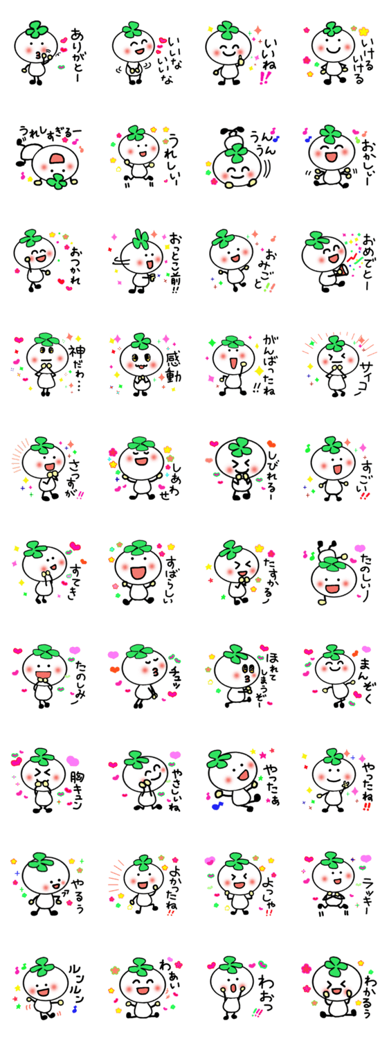しあわせクローバー。 でこっぺ コメントをどうぞ ハートやキラキラに囲まれた幸せを呼ぶクローバーがほめて、喜んで、励まします。かわいい手描き。あいうえお順。 このスタンプどう思う?!↓クリックで投票♪好き (0)かわいい (0)かっこいい (0)おもしろい (0)使いやすそう (0)欲しい (0)萌え (0)ほっこりする (0)おしゃれ (0)ゆるい (0)こわい (0)ウザい (0)キモい (0)ムカつく (0)持ってる (0)癒される (0)セクシー (0)個性的 (0)私は買わない (0)誰かプレゼントして! (0) 購入・プレゼントする Facebookでシェア Twitterでシェア