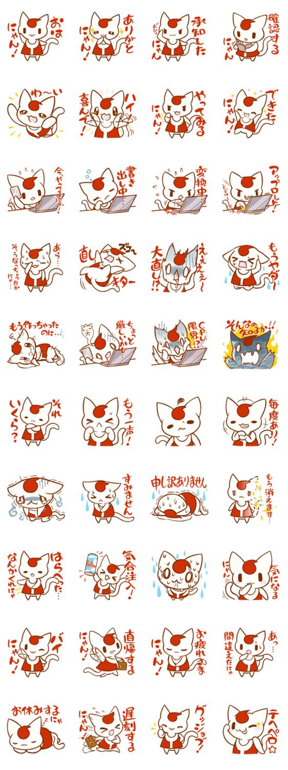 したうけにゃんこ YOYOmiracle, Inc. コメントをどうぞ とあるモノヅクリカンパニーで働くにゃんこ。いつも忙しいにゃんこ。だけど頑張るにゃんこ。きょうも修正依頼がたくさんにゃ...> < このスタンプどう思う?!↓クリックで投票♪好き (0)かわいい (0)かっこいい (0)おもしろい (0)使いやすそう (0)欲しい (0)萌え (0)ほっこりする (0)おしゃれ (0)ゆるい (0)こわい (0)ウザい (0)キモい (0)ムカつく (0)持ってる (0)癒される (0)セクシー (0)個性的 (0)私は買わない (0)誰かプレゼントして! (0) 購入・プレゼントする Facebookでシェア Twitterでシェア