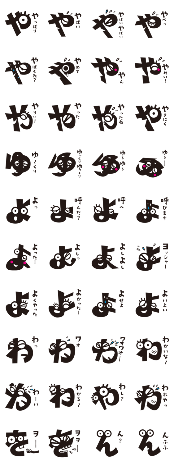 しゃべるひらがな「や行編」 もじもん コメントをどうぞ 「しゃべるひらがな/や行編」。文字なのによくしゃべります。文字代わりに使用してみては?やっさん、you、よっさん、わっきー、んんん?の5人? このスタンプどう思う?!↓クリックで投票♪好き (0)かわいい (0)かっこいい (0)おもしろい (0)使いやすそう (0)欲しい (0)萌え (0)ほっこりする (0)おしゃれ (0)ゆるい (0)こわい (0)ウザい (0)キモい (0)ムカつく (0)持ってる (0)癒される (0)セクシー (0)個性的 (0)私は買わない (0)誰かプレゼントして! (0) 購入・プレゼントする Facebookでシェア Twitterでシェア