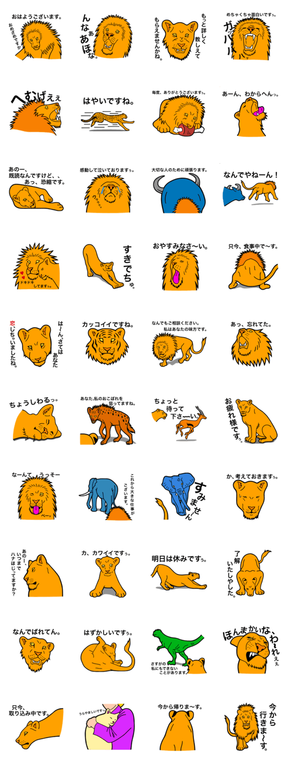 しゃべるライオン マーク ジャパード コメントをどうぞ 誰もがライオンになれるかも、、そんな動物のスタンプです。 このスタンプどう思う?!↓クリックで投票♪好き (0)かわいい (0)かっこいい (0)おもしろい (0)使いやすそう (0)欲しい (0)萌え (0)ほっこりする (0)おしゃれ (0)ゆるい (0)こわい (0)ウザい (0)キモい (0)ムカつく (0)持ってる (0)癒される (0)セクシー (0)個性的 (0)私は買わない (0)誰かプレゼントして! (0) 購入・プレゼントする Facebookでシェア Twitterでシェア