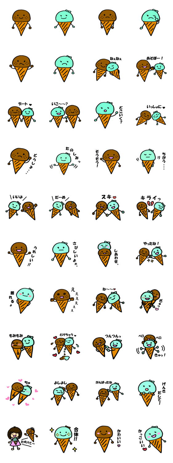しょこみんの仲良しチョコくんミントちゃん Shokomint コメントをどうぞ Shokomint(しょこみん)のスタンプ第三弾。いつも仲良しなアイスのキャラクター“チョコくんとミントちゃん”のラブラブライフが描かれた、ゆるかわスタンプです。 このスタンプどう思う?!↓クリックで投票♪好き (0)かわいい (0)かっこいい (0)おもしろい (0)使いやすそう (0)欲しい (0)萌え (0)ほっこりする (0)おしゃれ (0)ゆるい (0)こわい (0)ウザい (0)キモい (0)ムカつく (0)持ってる (0)癒される (0)セクシー (0)個性的 (0)私は買わない (0)誰かプレゼントして! (0) 購入・プレゼントする Facebookでシェア Twitterでシェア
