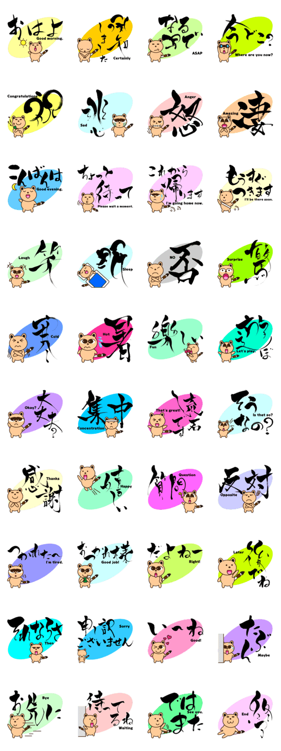 しょどうたぬき しょうはく コメントをどうぞ しっぽの筆で書道をするたぬきが書いた筆文字スタンプです。 このスタンプどう思う?!↓クリックで投票♪好き (0)かわいい (0)かっこいい (0)おもしろい (0)使いやすそう (0)欲しい (0)萌え (0)ほっこりする (0)おしゃれ (0)ゆるい (0)こわい (0)ウザい (0)キモい (0)ムカつく (0)持ってる (0)癒される (0)セクシー (0)個性的 (0)私は買わない (0)誰かプレゼントして! (0) 購入・プレゼントする Facebookでシェア Twitterでシェア