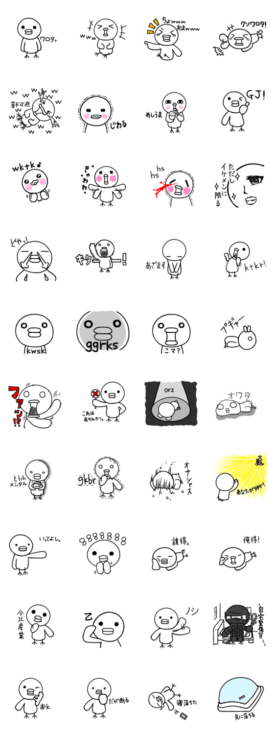 しろいトリ ネット用語ver. ゆかはん コメントをどうぞ インターネットや2ちゃんねるでよく見るオタク用語を白い鳥に言わせました。 このスタンプどう思う?!↓クリックで投票♪好き (0)かわいい (0)かっこいい (0)おもしろい (0)使いやすそう (0)欲しい (0)萌え (0)ほっこりする (0)おしゃれ (0)ゆるい (0)こわい (0)ウザい (0)キモい (0)ムカつく (0)持ってる (0)癒される (0)セクシー (0)個性的 (0)私は買わない (0)誰かプレゼントして! (0) 購入・プレゼントする Facebookでシェア Twitterでシェア