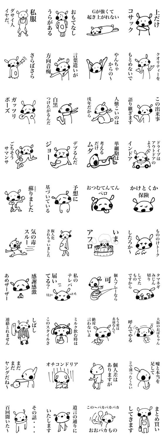 しろさんの狙い撃ち言葉 逃がしてしまえホトトギス コメントをどうぞ ちょっとズレた言葉を話すしろさん。でも狙っているのは、流行語大賞であります。 このスタンプどう思う?!↓クリックで投票♪好き (0)かわいい (0)かっこいい (0)おもしろい (0)使いやすそう (0)欲しい (0)萌え (0)ほっこりする (0)おしゃれ (0)ゆるい (0)こわい (0)ウザい (0)キモい (0)ムカつく (0)持ってる (0)癒される (0)セクシー (0)個性的 (0)私は買わない (0)誰かプレゼントして! (0) 購入・プレゼントする Facebookでシェア Twitterでシェア