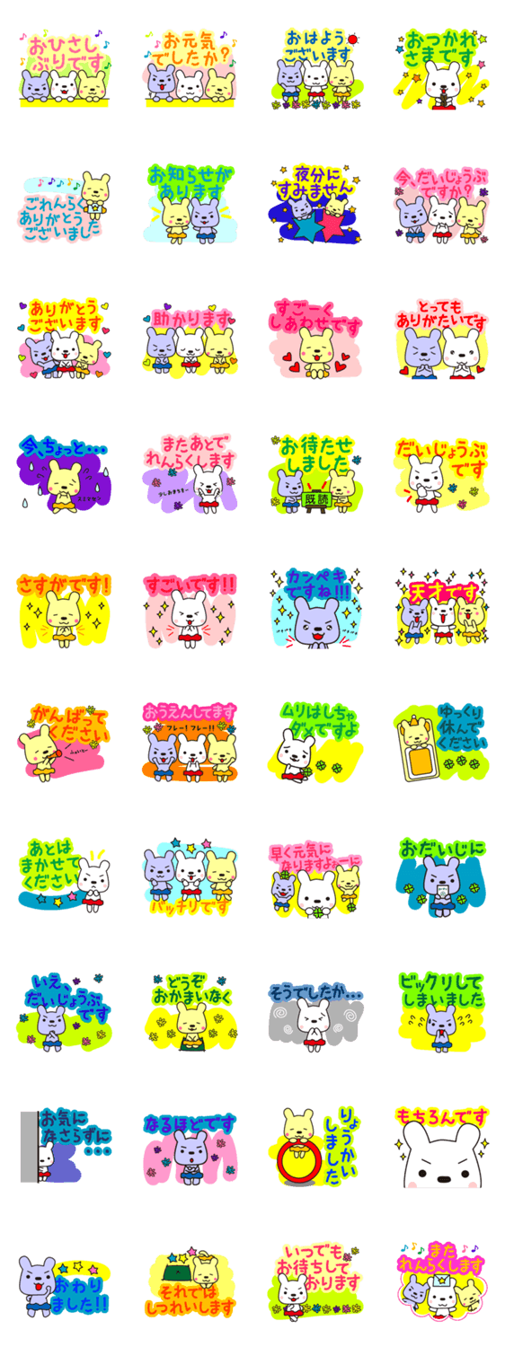 しんせつウサギ★しゅしゅ隊 ☆IwA☆ コメントをどうぞ おなかにつけているのはスカートではなく・・・≪シュシュ≫★ウサギの「しゅしゅ隊」があなたの代わりにていねいにお返事してくれます♪ このスタンプどう思う?!↓クリックで投票♪好き (0)かわいい (0)かっこいい (0)おもしろい (0)使いやすそう (0)欲しい (0)萌え (0)ほっこりする (0)おしゃれ (0)ゆるい (0)こわい (0)ウザい (0)キモい (0)ムカつく (0)持ってる (0)癒される (0)セクシー (0)個性的 (0)私は買わない (0)誰かプレゼントして! (0) 購入・プレゼントする Facebookでシェア Twitterでシェア