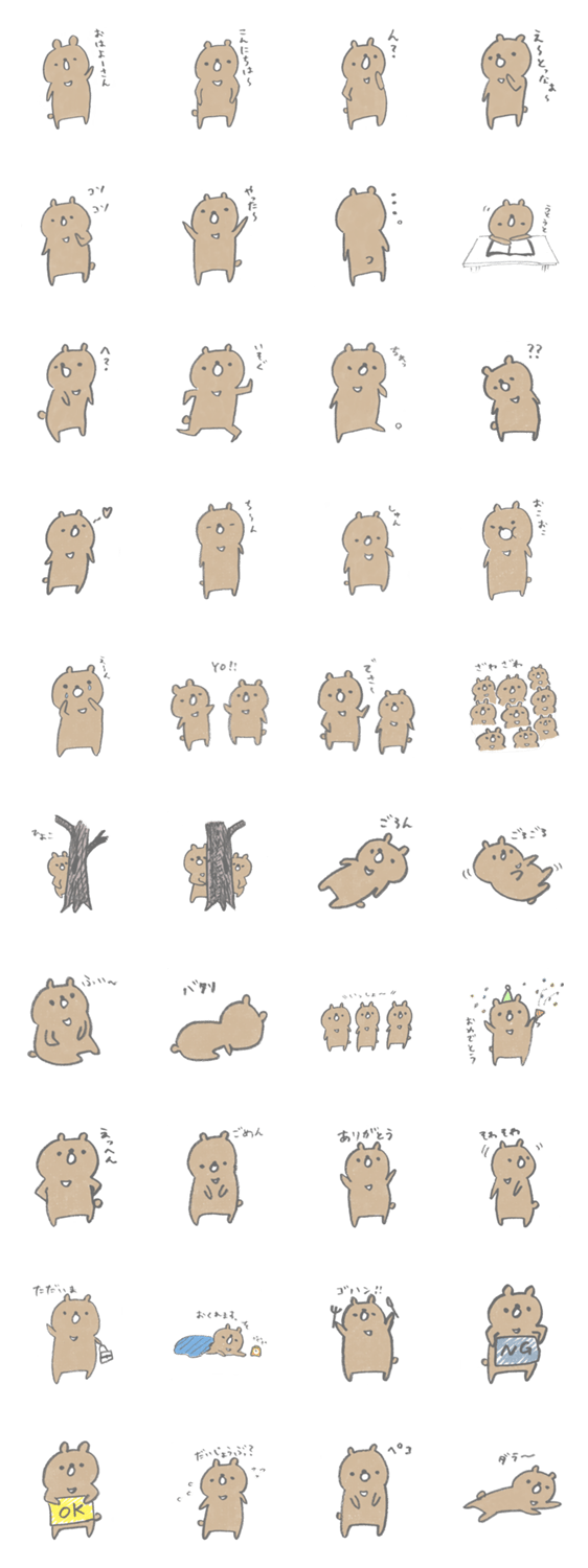 すぎっくま おす コメントをどうぞ 杉林に生息しているらしい、とてものんびりしたくま。ただ気ままに生活しているくまのスタンプです。 このスタンプどう思う?!↓クリックで投票♪好き (0)かわいい (0)かっこいい (0)おもしろい (0)使いやすそう (0)欲しい (0)萌え (0)ほっこりする (0)おしゃれ (0)ゆるい (0)こわい (0)ウザい (0)キモい (0)ムカつく (0)持ってる (0)癒される (0)セクシー (0)個性的 (0)私は買わない (0)誰かプレゼントして! (0) 購入・プレゼントする Facebookでシェア Twitterでシェア
