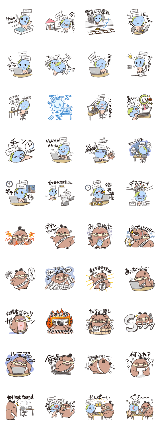 すたっくん&かものはしジロー 株式会社 ミックウェア コメントをどうぞ 株式会社ミックウェアのキャラクター"すたっくん"と"かものはしジロー"が、ソフトウェア開発で繰り広げる日常のシーンを再現。是非使ってみてくださいね。 このスタンプどう思う?!↓クリックで投票♪好き (0)かわいい (0)かっこいい (0)おもしろい (0)使いやすそう (0)欲しい (0)萌え (0)ほっこりする (0)おしゃれ (0)ゆるい (0)こわい (0)ウザい (0)キモい (0)ムカつく (0)持ってる (0)癒される (0)セクシー (0)個性的 (0)私は買わない (0)誰かプレゼントして! (0) 購入・プレゼントする Facebookでシェア Twitterでシェア