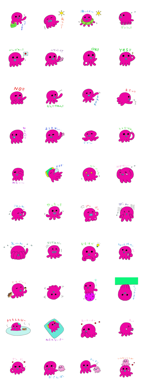 それいけ!ぴんタコくん zerogravity コメントをどうぞ ピンクのタコなんて珍しいでしょ?ボクの可愛さにみんなメロメロさ!相棒のちびタコもよろしくね。 このスタンプどう思う?!↓クリックで投票♪好き (0)かわいい (0)かっこいい (0)おもしろい (0)使いやすそう (0)欲しい (0)萌え (0)ほっこりする (0)おしゃれ (0)ゆるい (0)こわい (0)ウザい (0)キモい (0)ムカつく (0)持ってる (0)癒される (0)セクシー (0)個性的 (0)私は買わない (0)誰かプレゼントして! (0) 購入・プレゼントする Facebookでシェア Twitterでシェア